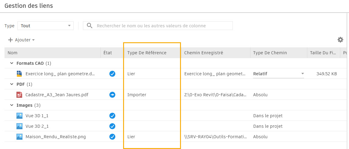 La boîte de dialogue de la gestion des liens regroupe dorénavant les liens ET les importations. On les distingue grâce à la colonne "Type de référence" (Lier / Importer).