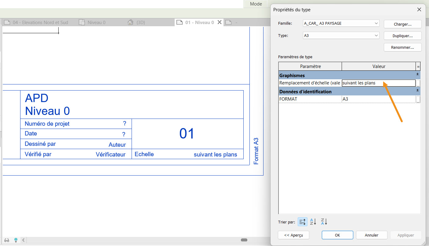 Il est dorénavant possible, sans modifier les familles de cartouche, de remplacer le texte "Comme indiqué" qui apparait en valeur d'échelle d'une feuille ayant des vues à différentes échelles.