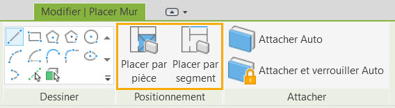 - Placer par pièce : permet de modéliser un ensemble de murs sur toute la périphérie d'une pièce (ce qui permettrait par exemple de modéliser un parement en soubassement