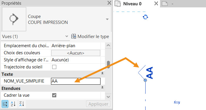 Cela permet par exemple d'intégrer un nom de vue simplifié (plus souple à gérer que les numéros de feuilles et les numéros de détail qui ne sont renseignés q'une fois la coupe mise en page).